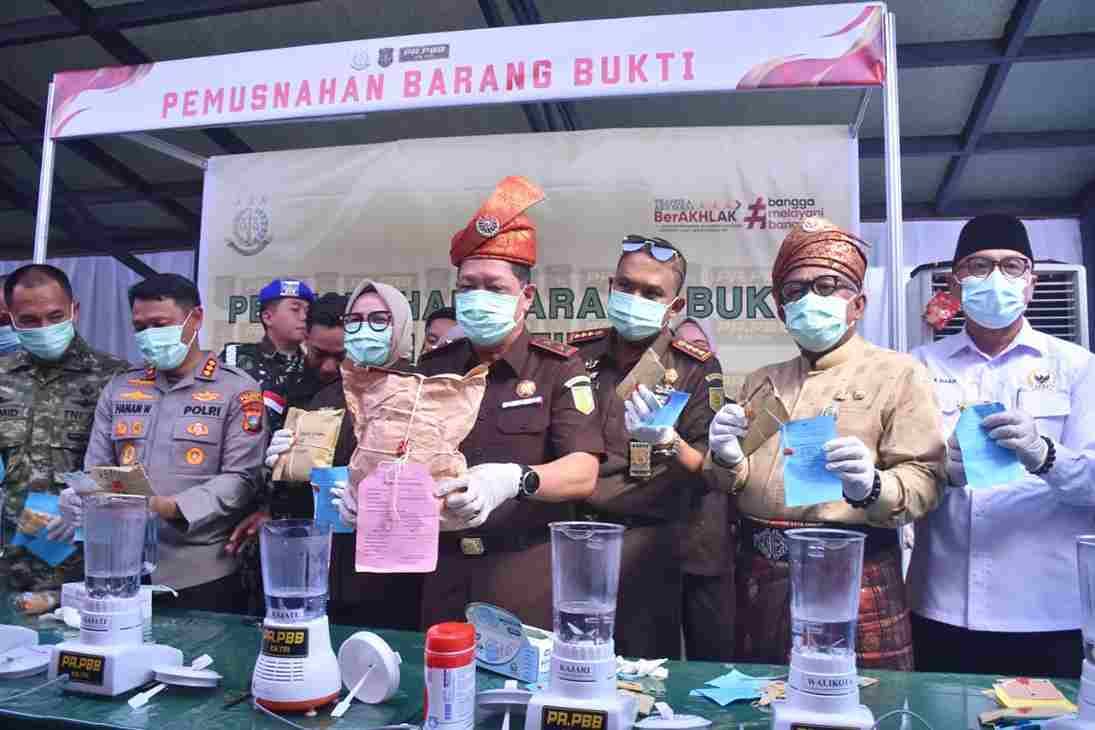 Barang bukti sabu dan pil ekstasi dimusnahkan dengan cara dihancurkan menggunakan blender dan dicampur ke dalam air mendidih agar tidak dapat disalahgunakan lagi, sementara ganja dimusnahkan dengan cara dibakar.