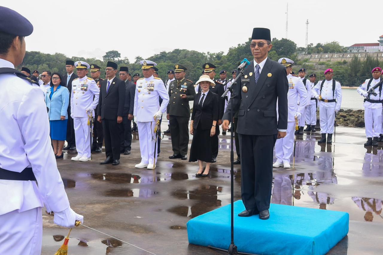 Batam (SN) – Walikota Batam Amsakar Achmad bersama Wakil Walikota Li Claudia Chandra menghadiri upacara Peringatan Hari Pahlawan Tingkat Kota Batam Tahun 2025 yang digelar di Markas Komando Daerah Angkatan Laut (Kodaeral) IV, Batuampar, Senin (10/11/2025).