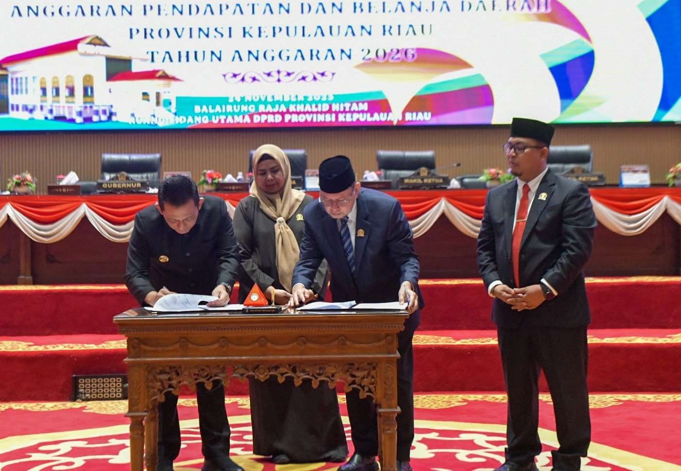 Tanjungpinang (SN) – Pemerintah Provinsi Kepulauan Riau bersama DPRD Kepri resmi menyepakati Kebijakan Umum Anggaran (KUA) dan Prioritas Plafon Anggaran Sementara (PPAS) Tahun Anggaran 2026. Kesepakatan tersebut ditandai dengan penandatanganan Nota Kesepakatan Bersama dalam Rapat Paripurna yang digelar di Ruang Sidang Utama Balairung Raja Khalid Hitam, Dompak, Senin (24/11/2025).