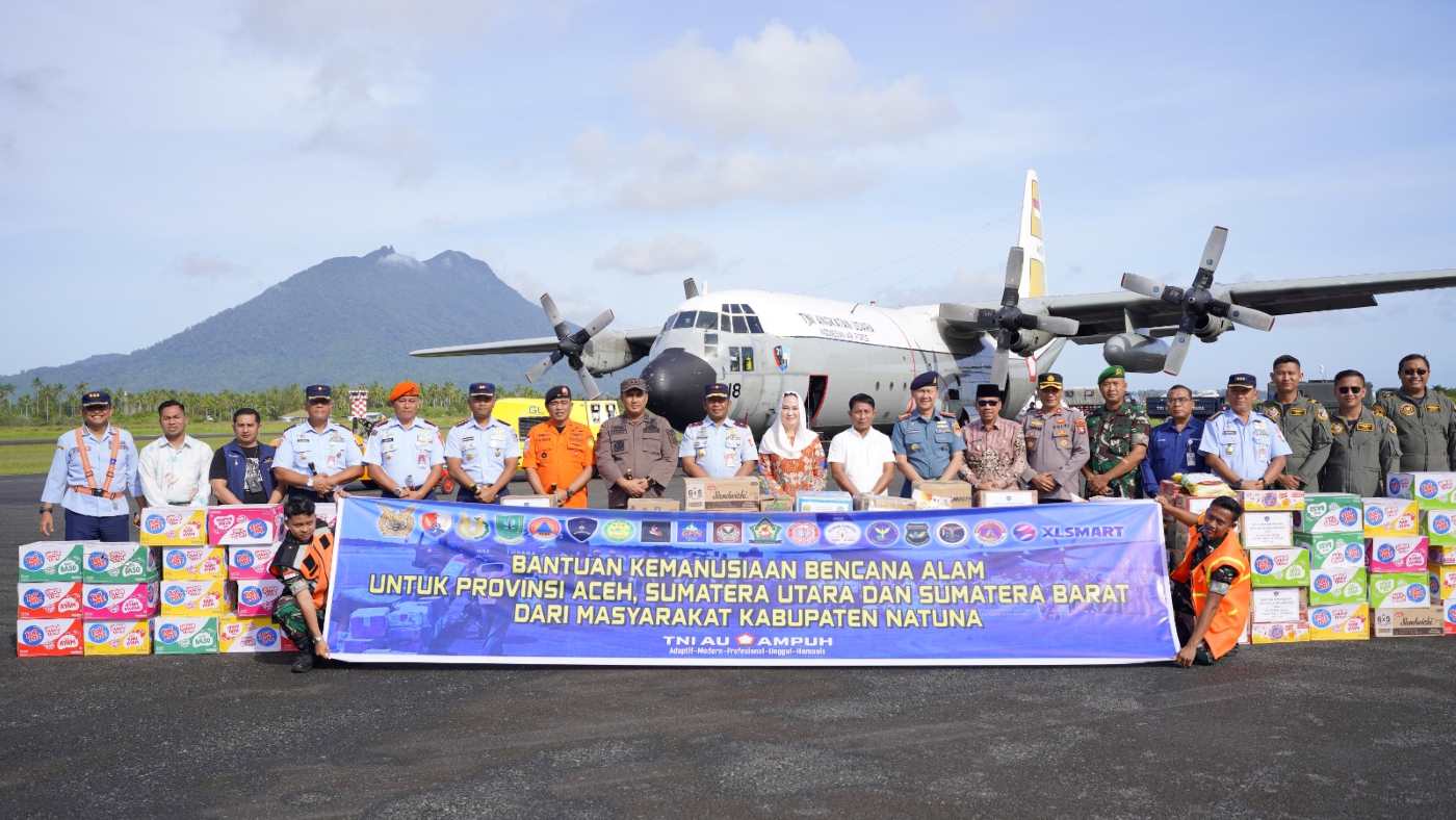 Natuna ( SN) – Pemerintah Kabupaten Natuna kembali menunjukkan kepeduliannya terhadap sesama. Bantuan kemanusiaan tahap kedua untuk korban bencana banjir di Provinsi Aceh, Sumatra Utara, dan Sumatra Barat resmi diberangkatkan melalui Apron Base Ops Lanud Raden Sadjad. Prosesi pelepasan dipimpin langsung oleh Bupati Natuna, Cen Sui Lan, Rabu (10/12/2025).