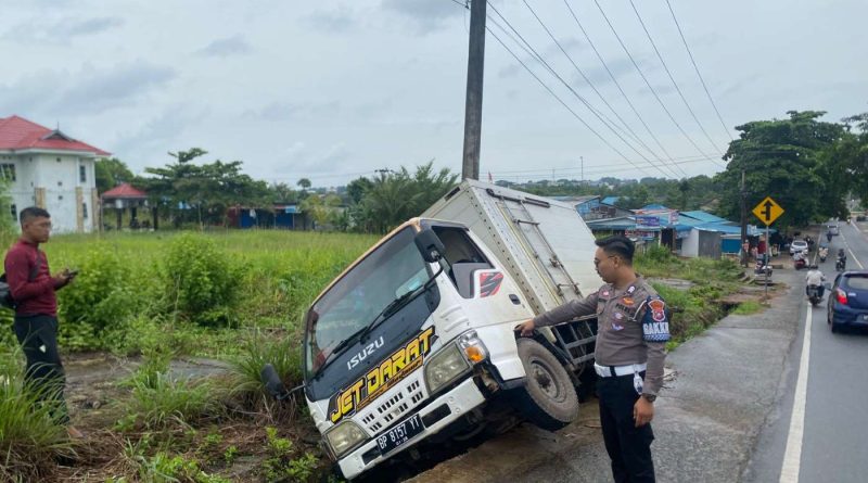 Akibat Hujan Deras, Mobil Boks Terperosok ke Parit di KM 8 Tanjungpinang