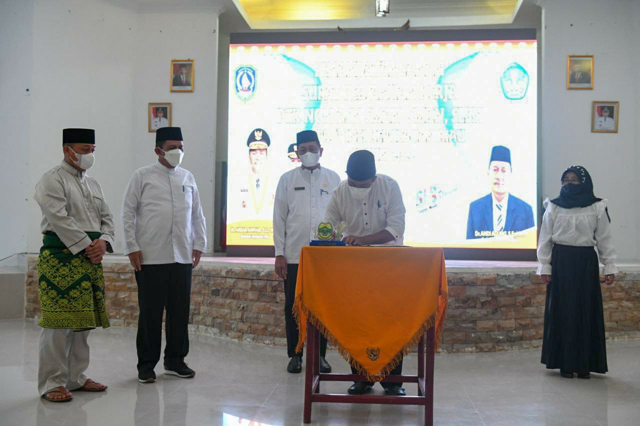 Penyerahan bantuan hibah keagamaan ini juga disejalankan dengan penandatanganan SK guru PTK non ASN yang dilakukan di Aula Kantor Bupati Lingga, Daik, Kamis (7/4/2022).