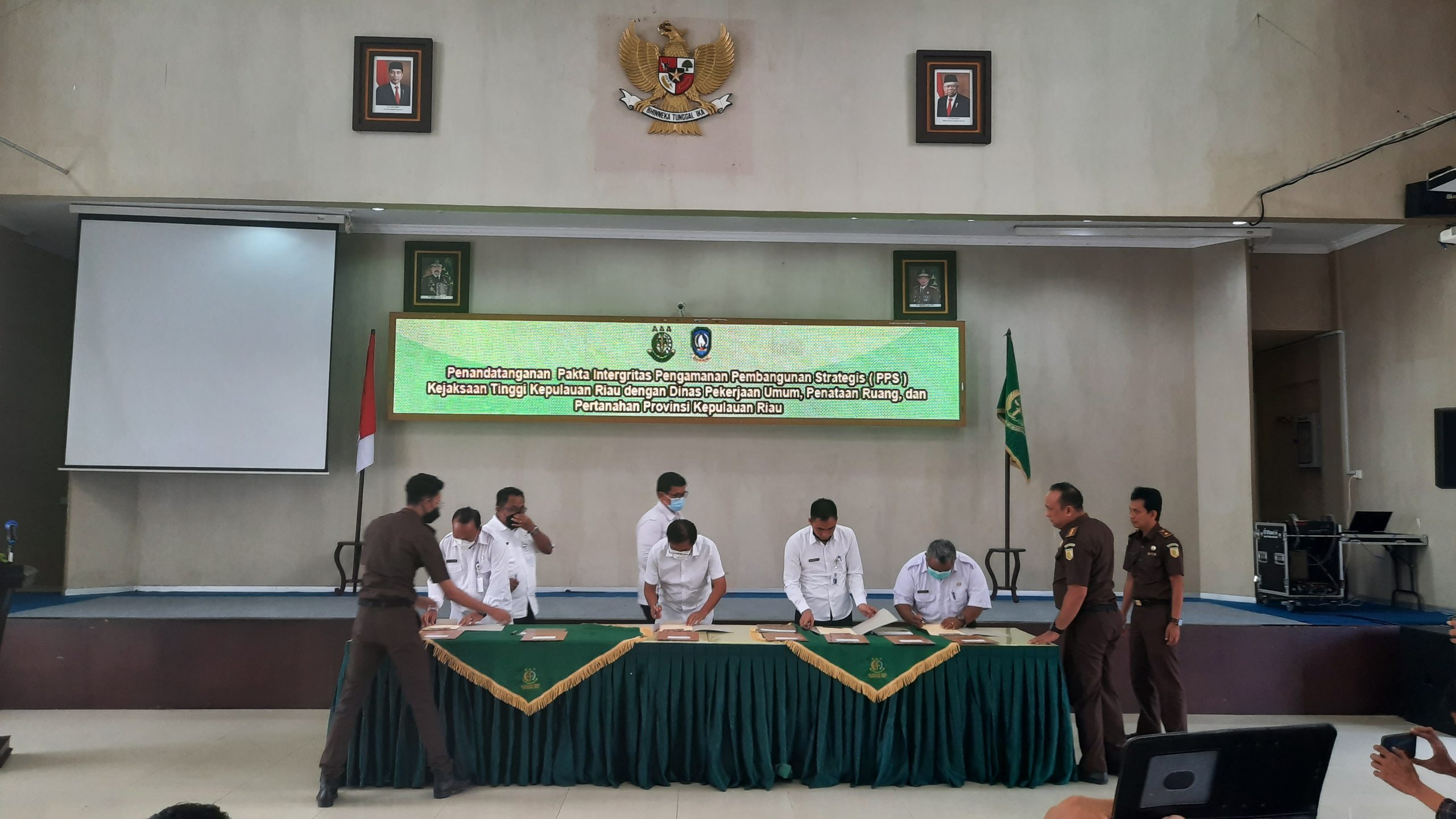 Tanjungpinang (SN) – Upaya meminimalisir terjadinya ganguan dan kendala dalam pekerjaan pembangunan fisik yang bersumber dari APBD Provinsi Kepri 2022, Kejaksaan Tinggi (Kejati) dan Dinas Pekerjaan Umum, Penataan Ruang dan Pertanahan menandatangani fakta integritas pengamanan pembangunan sterategis (PPS).