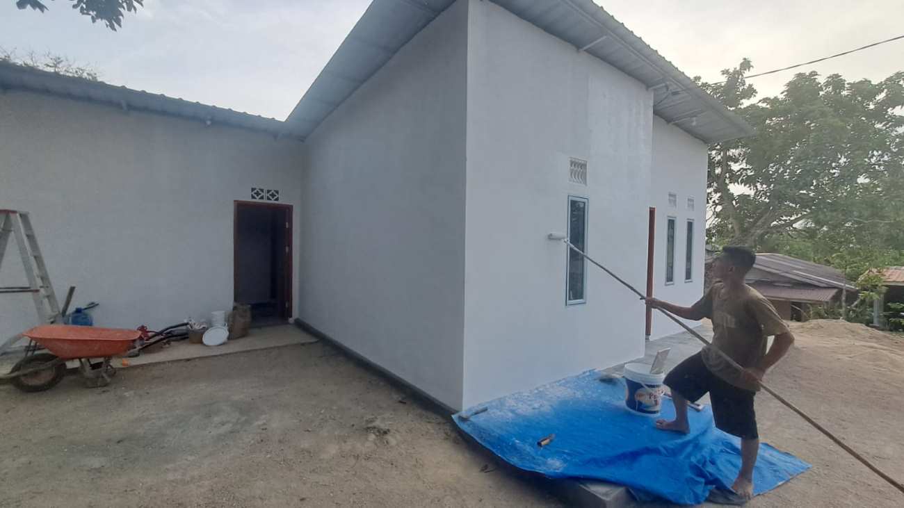 Program bedah rumah yang digagas PWI Bintan di Desa Teluk Sasah, Kecamatan Seri Kuala Lobam, hampir rampung, dan siap diserahkan kepada penerima manfaat, Wira, pada Kamis (5/2/2026). (F-Emha)