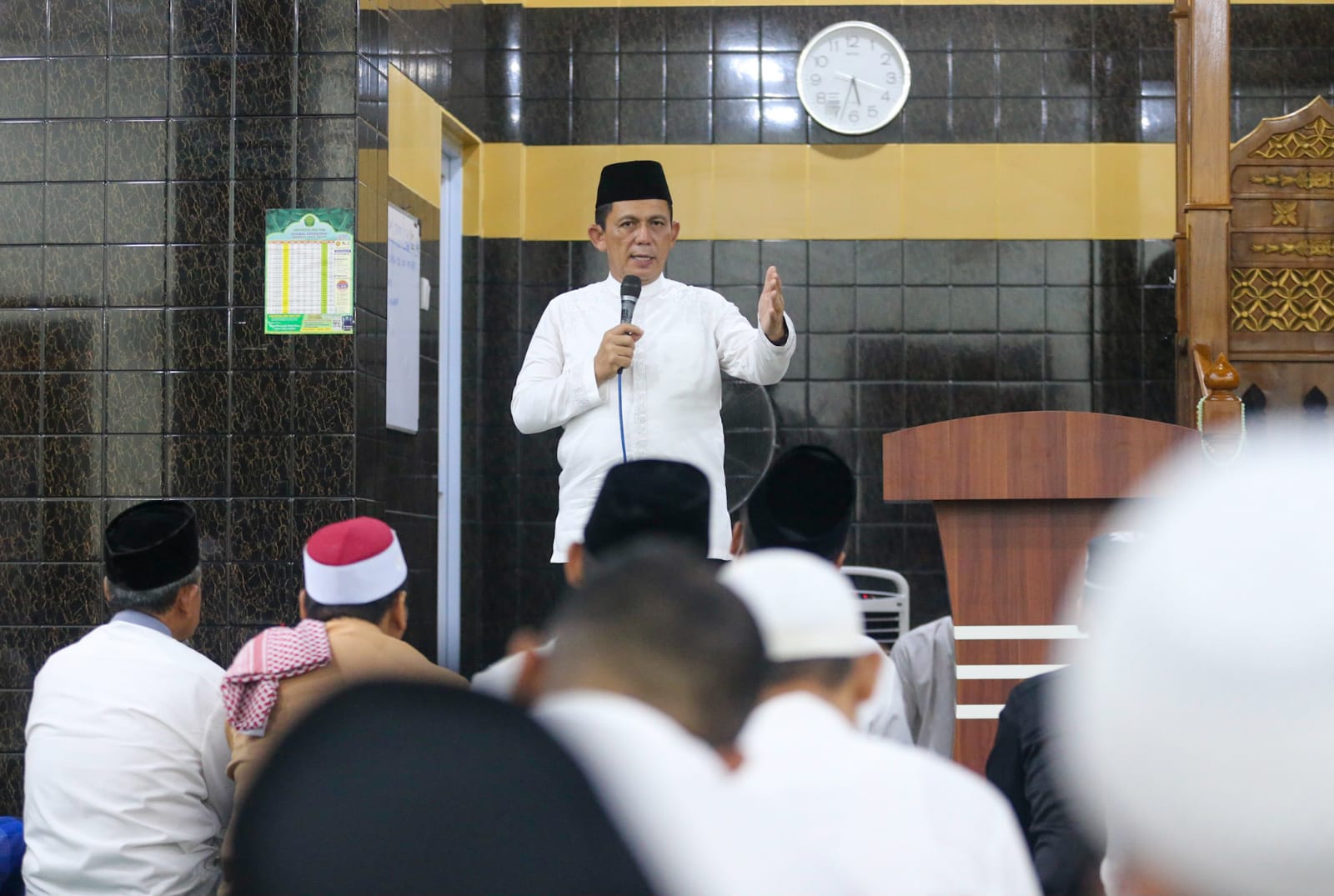 Batam (SN) – Gubernur Kepri Ansar Ahmad kembali melanjutkan rangkaian safari ramadhan dengan melaksanakan sholat subuh berjamaah, sekaligus memberikan tausiyah di Masjid Asy Syuhada Bengkong Laut Kota Batam, Minggu (17/4/2022).